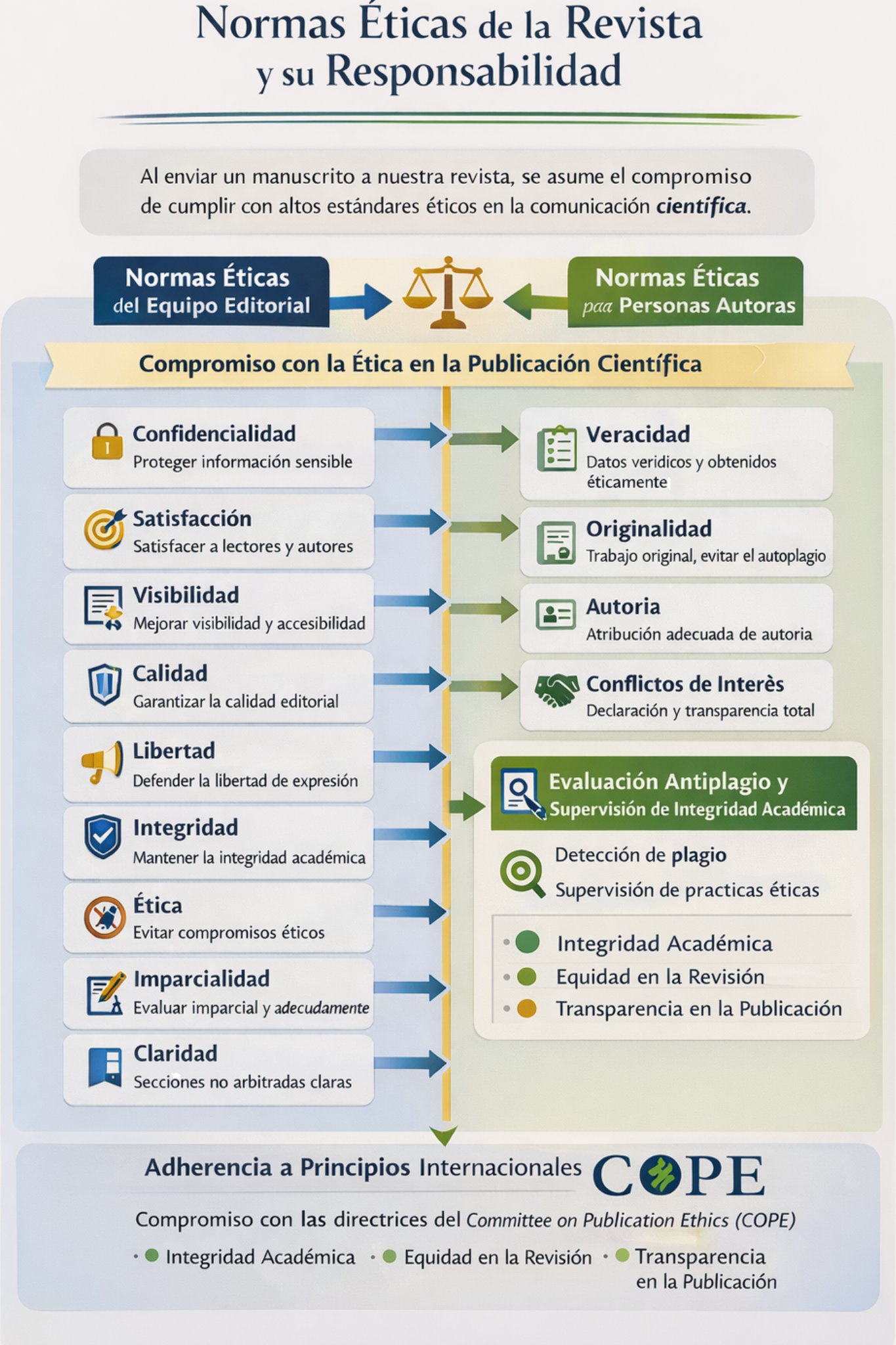 El proceso de recepción, revisión, evaluación y publicación en esta revista se llevará a cabo bajo estándares de transparencia, ética y profesionalismo. Todos los involucrados deben adherirse a las siguientes normas: